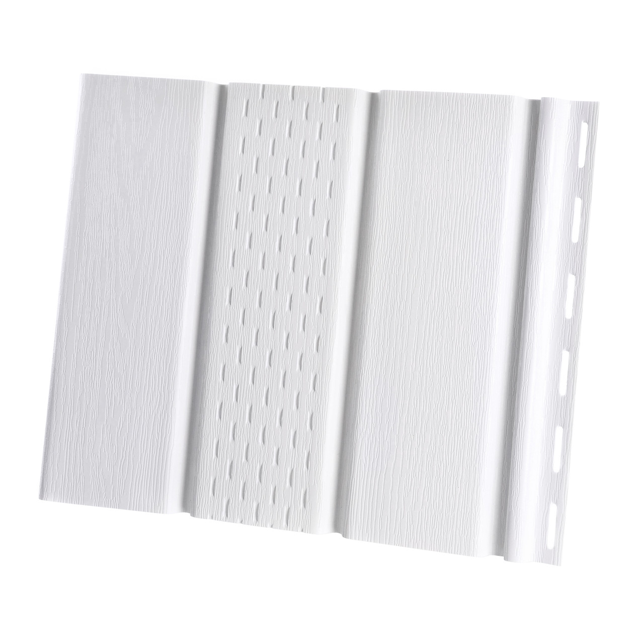Призначений для підшивання фронтонних та карнизних звисів. Перфорований софіт забезпечує додаткову вентиляцію підпокрівельного простору.